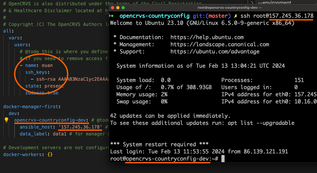 Once again, add SSH public keys for super admins and amend the hostname and IP address as above.