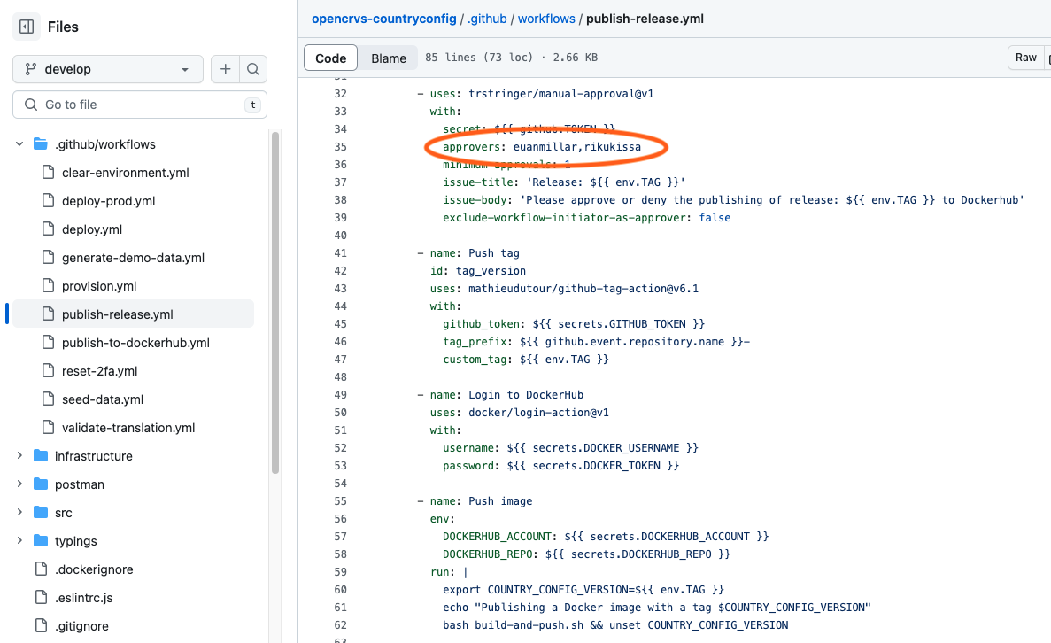 Change the highlighted Git usernames from us, to your repo admins in the .github/workflows/publish-release.yml order to take advantage of this process.
