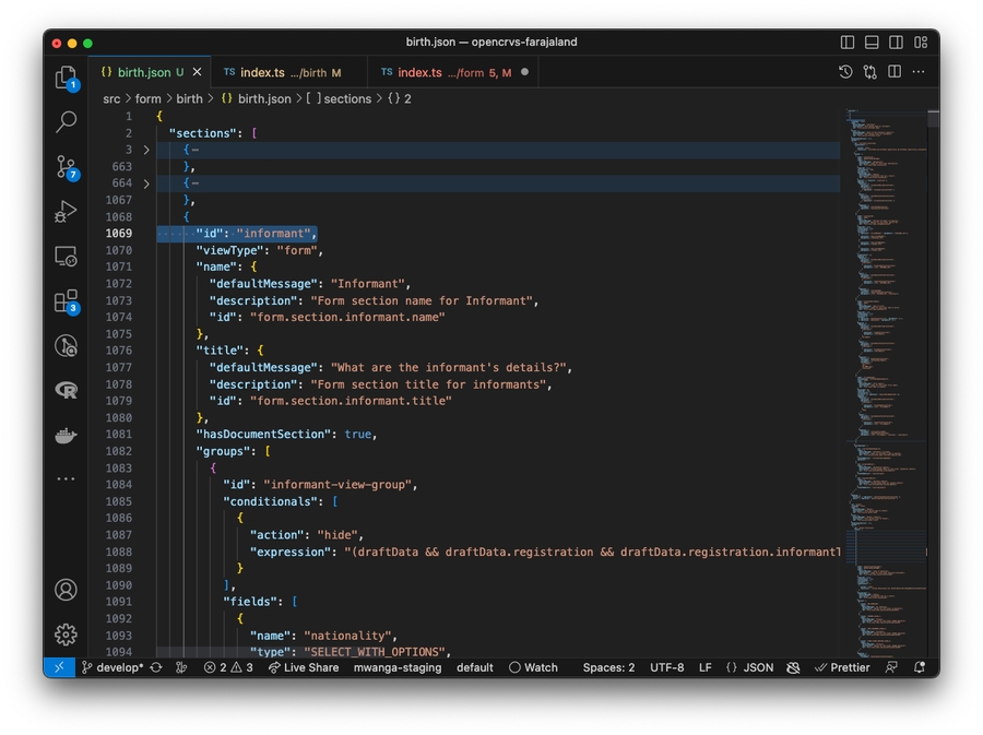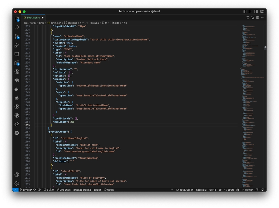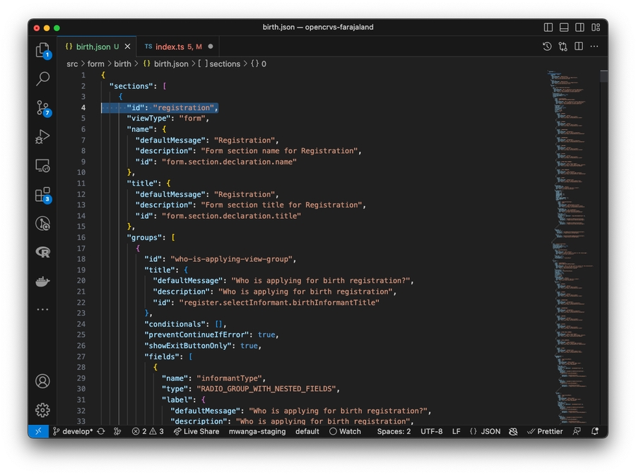 Repeat steps 8 to 16 for the death.json file. Once saved you can refresh OpenCRVS and your birth and death forms will render in v1.3 successfully.