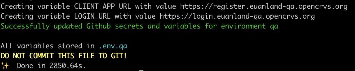 The script will slowly create the Github environment and upload all the secrets OpenCRVS requires to provision and deploy OpenCRVS from Github Actions.