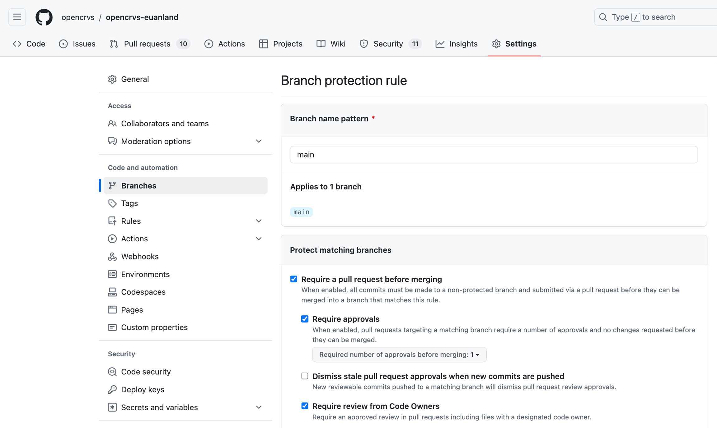 Require a pull request before merging / Require approvals
