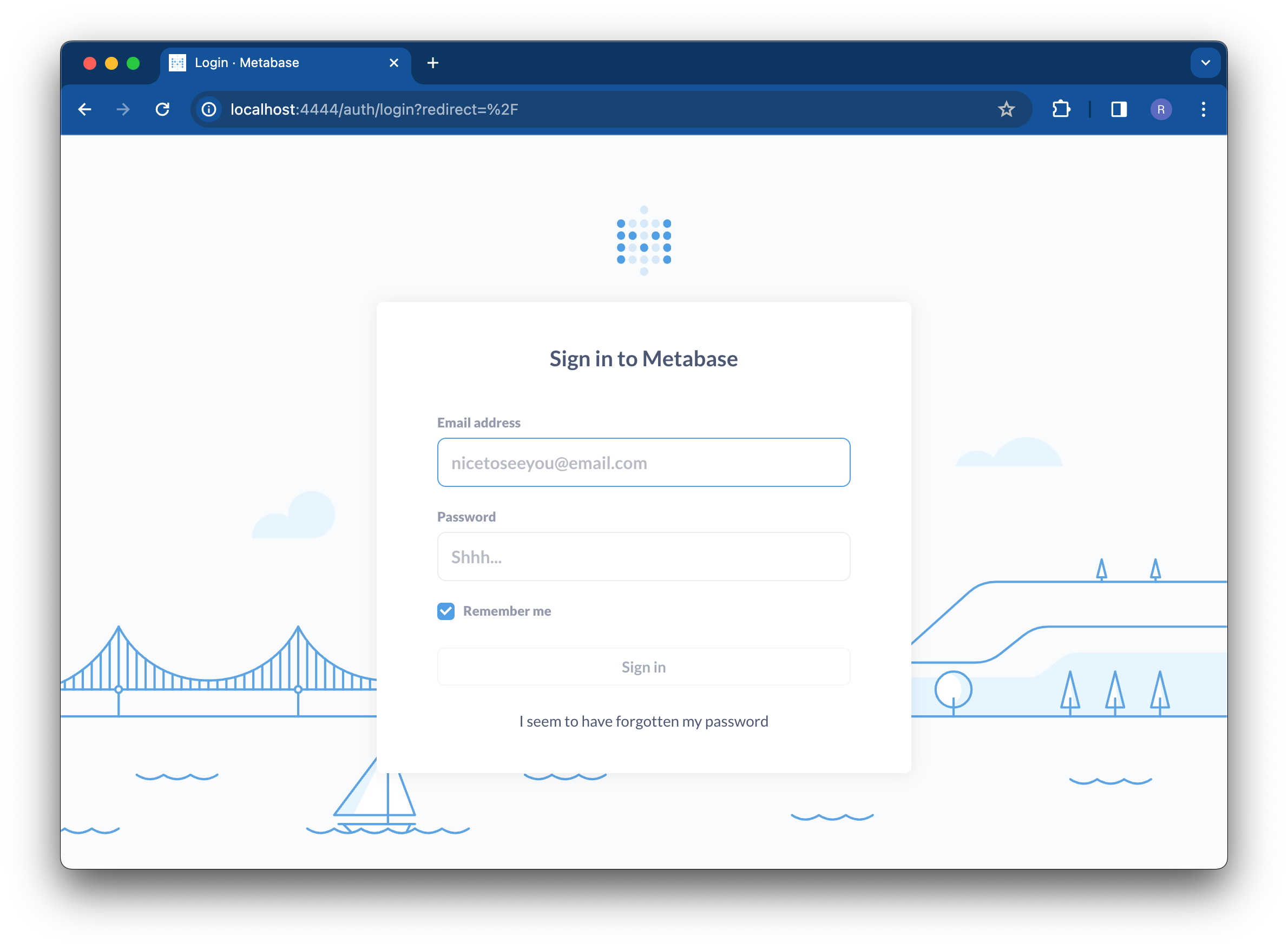 In local development environments, you can use the following credentials to log into metabase: