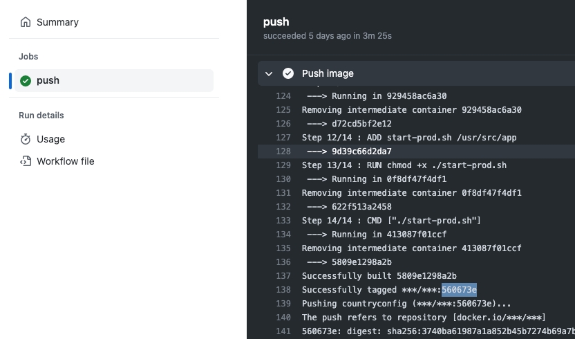 Copy the tag associated with your countryconfig Docker container image because you will use it in the next step.