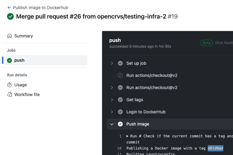 <figure><img src="https://content.gitbook.com/content/vgBjh6h3DfeeMhA5gwiP/blobs/junwjgKwG4l84ownK2bl/Screenshot%202024-02-13%20at%2014.01.34.png" alt=""><figcaption><p>A Docker container image pushed with the tag: d81d0ad</p></figcaption></figure>