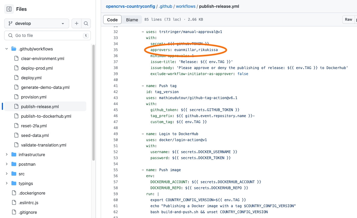 Change the highlighted Git usernames from us, to your repo admins in the .github/workflows/publish-release.yml order to take advantage of this process.