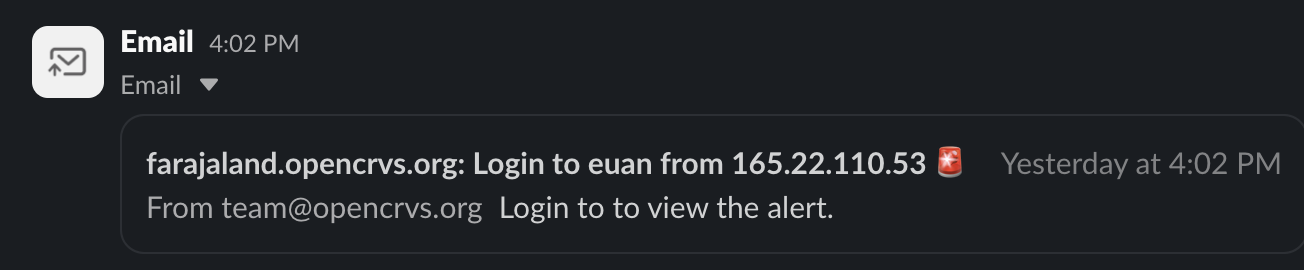 </code></pre></td></tr><tr><td>Optional: Confirm Sentry errors to Slack from QA, Staging and Prod</td><td>A test Sentry error in Slack looks something like this: <img src="https://content.gitbook.com/content/vgBjh6h3DfeeMhA5gwiP/blobs/mwRAPKsfhK09KY18vJSc/Screenshot%202024-11-14%20at%2017.22.57.png" alt=""></td></tr><tr><td>Are National System Admin passwords updated, minimum 12 chars long and stored in a Password Manager.</td><td>The National System Admin must immediately change their password from the password that exists in <a href="https://github.com/opencrvs/opencrvs-countryconfig/blob/develop/src/data-seeding/employees/source/prod-employees.csv">prod-employees.csv</a> . As they are a super user, they must confirm that the new password is saved in a password manager tool.</td></tr><tr><td>Github account is owned by country and OpenCRVS Core team are removed as admins</td><td>If the OpenCRVS team have assisted you to set up your Github organisation, they must no longer have "Admin" rights in your countryconfig repository otherwise they can potentially access citizen data.  </td></tr><tr><td>Verify firewall hides all ports from the public internet</td><td><strong>OpenCRVS should not be accessible on the public internet.</strong> But if you decide to do this <strong>at your own risk</strong> then this command can help you discover open ports: <code>nmap --open opencrvs.domain.com</code></td></tr><tr><td>Clear all data from production instances created during testing</td><td><a href="../3.-installation/3.3-set-up-a-server-hosted-environment/3.3.6-deploy-automated-and-manual/4.3.6.5-resetting-a-server-environment">Reset the production environment</a> so that it is clear of any test registrations.</td></tr><tr><td>Delete all test backups on backup server</td><td>SSH into the backup server and delete any test backups.  Especially if you have configured the backup server to store more than the default 7 days of backups.</td></tr><tr><td>Delete all terminal history on all <strong>production</strong>, <strong>staging</strong> and <strong>backup</strong> servers</td><td><p>You might have exported secrets in Terminal to use when resetting environments or debugging.  Clear the terminal history like this:  </p><pre class="language-bash"><code class="lang-bash">history -c